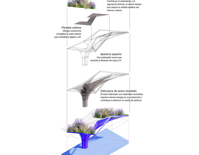 MoBe is a comprehensive system capable of adapting to different urban conditions with a clear and coherent identity. Given the scale and diversity of situations present in the city, a family of elements is proposed that can be combined and varied within a common logic. The system concept encompasses the constructive, functional, spatial, and urban aspects, allowing for the creation of stations that interact with their immediate context while simultaneously building a recognizable network as a whole.