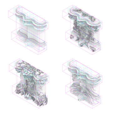 Multiscalarity Models proposes a research regarding the scalar capacities of ornament to transform and produce innovative architectural organizations. Those elements that historically emerge as accessory issues, such as friezes, sculptures, cornices, capitals, decorations, become concrete work material, bearers of unique organizational powers, where the intersection between architectural and sculptural form is the nourished work space for projects to come.
