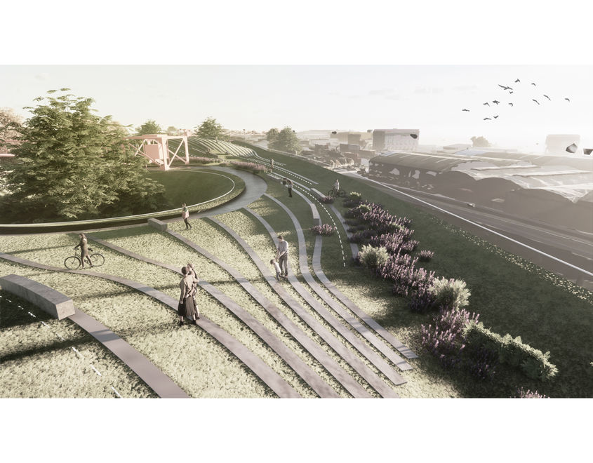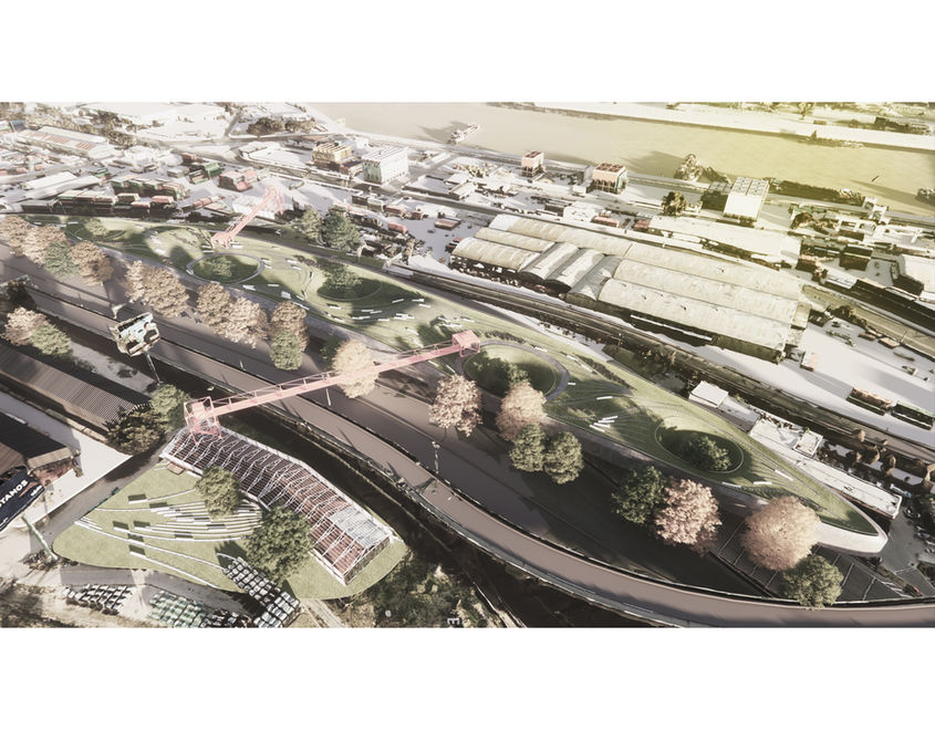 The project proposes an elevated park, beneath which a Cultural Center is deployed. In continuity with the Saldías Cultural Pole on San Pedro de Jujuy Street, the proposal aims to reactivate a sector of the City of Buenos Aires with great potential given its connectivity and link with the coastal edge of the Río de la Plata. Likewise, the urban proposal seeks to generate links with the Costa Salguero Park to the North and the Costa Urbana Park to the South, two young ventures in the City that seek to recover the edge of the River and consolidate an increasingly continuous coastal walk.