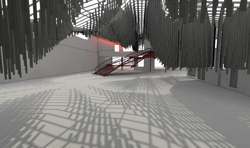 The proposal produce an affectation of the current homogeneous space towards the consolidation of instances of heterogeneity. When illuminated, the mantle will project a dance of shadows and lights, which will alter the perception of the place, making it variable, mobile, unstable and interactive. The artifact seeks to produce an impact on the perception of the individual through the manipulation of a simple effect based on lights, shadows and movement.